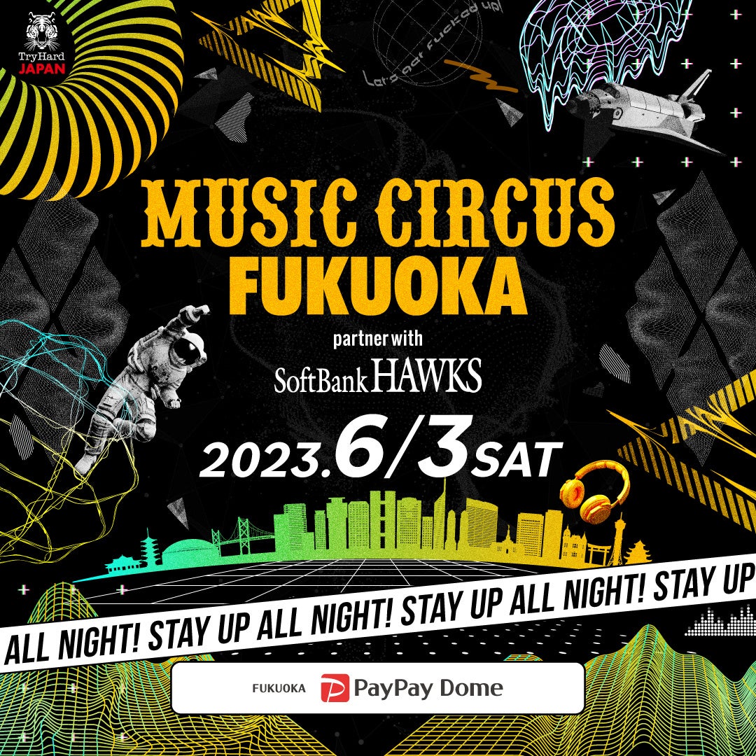 【福岡PayPayドーム】オールナイト音楽フェスMUSIC CIRCUS FUKUOKA partner with SoftBankHAWKS 2023年6月3日に開催決定。