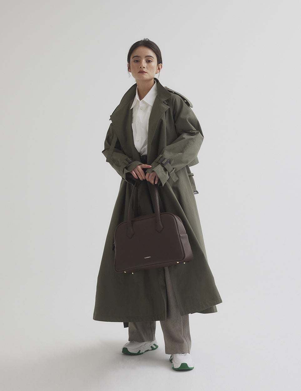 ハンド部分にも型崩れしにくく持ちやすい芯を入れ、ファスナーも通常のバッグシリーズより更に高品質な物で仕上げました。
