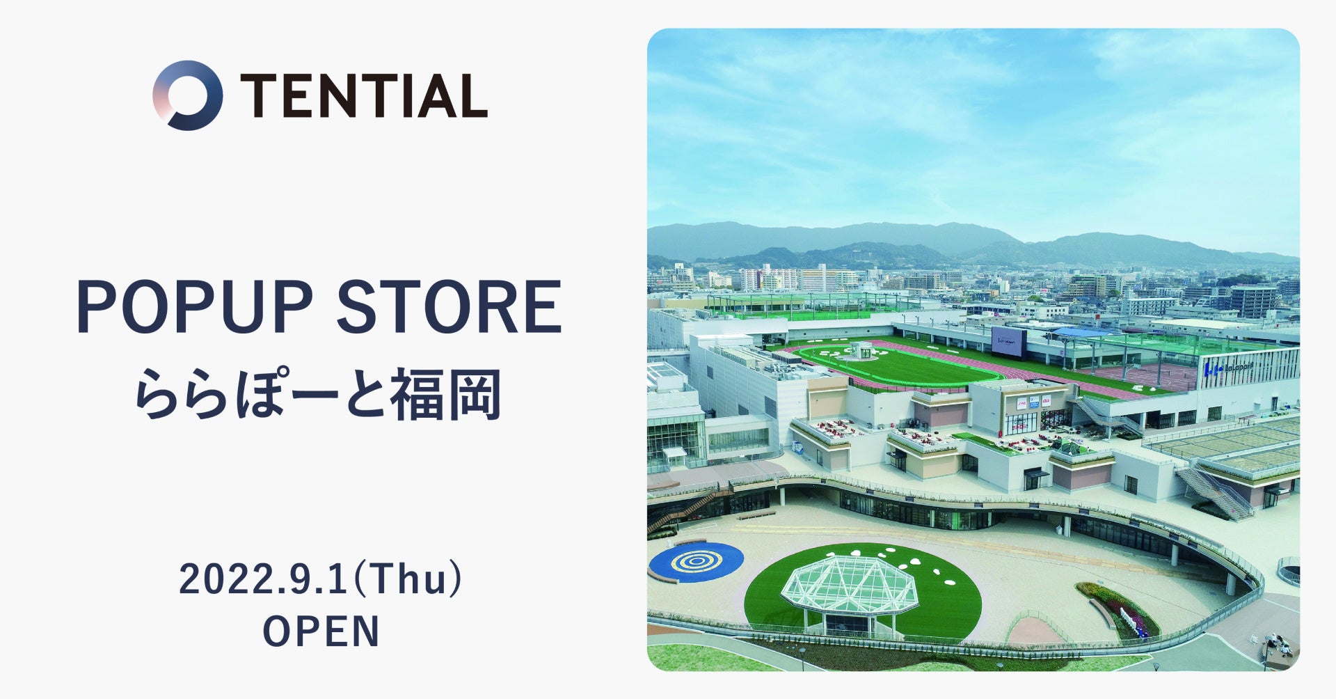 この結果を受け、より多くのお客様にTENTIAL製品に触れていただく機会を迅速に増やしていく目的で、8月よりポップアップ店舗を実施しております。今回ポップアップ2店舗目として福岡・博多にある「三井ショッピングパーク ららぽーと福岡」に出店します。