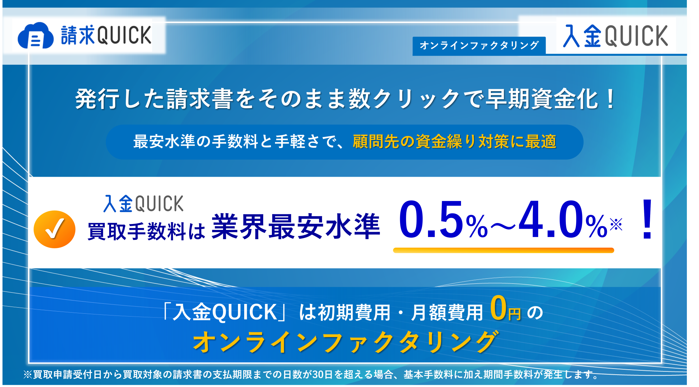 *1: 買取申請受付日から買取対象の請求書の支払期限までの日数が30日を超える場合、基本手数料に加え期間手数料が発生します。