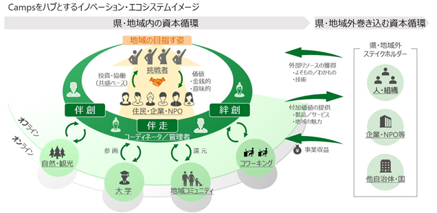 LTSはこの事業運営を通して3つのバンソウ機能(伴創・伴走・絆創)をイノベーション・ハブに実装し、Campsを拠点に起業やイノベーション創出にチャレンジをする挑戦者を、地域で生み地域で育てるコミュニティの形成を目指します。