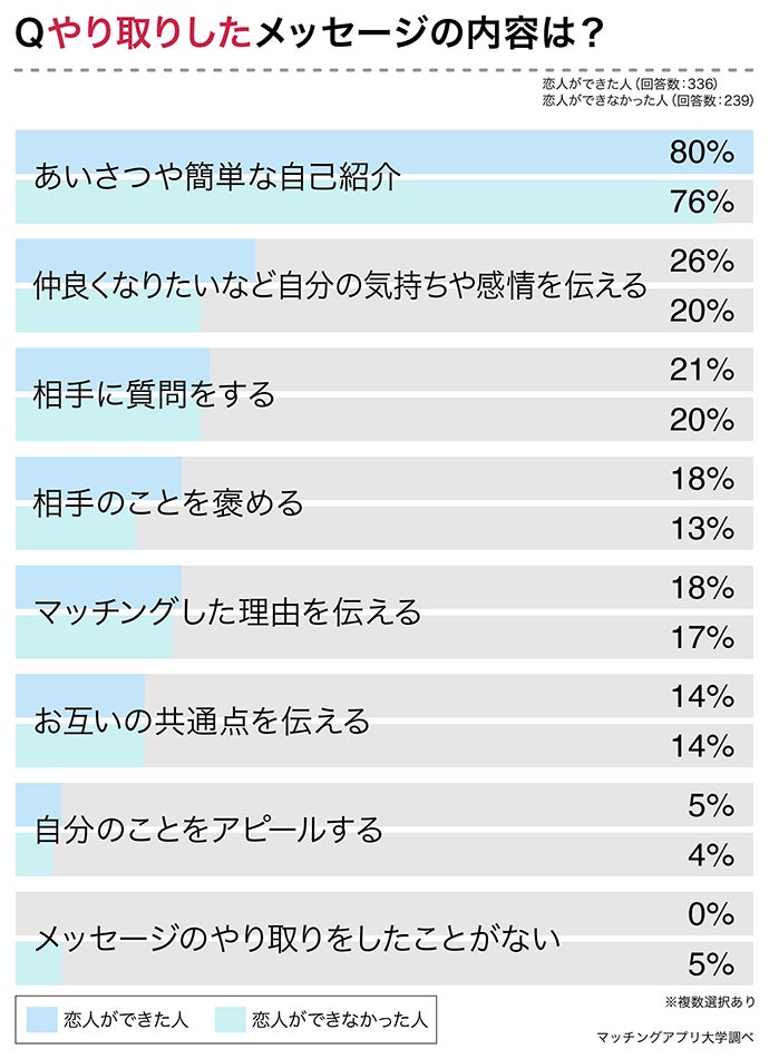これは言い換えると、出会いを成功させた人の方が、プロフィールの項目を詳しく埋めていて、自己紹介の内容が充実しているということを表しています。