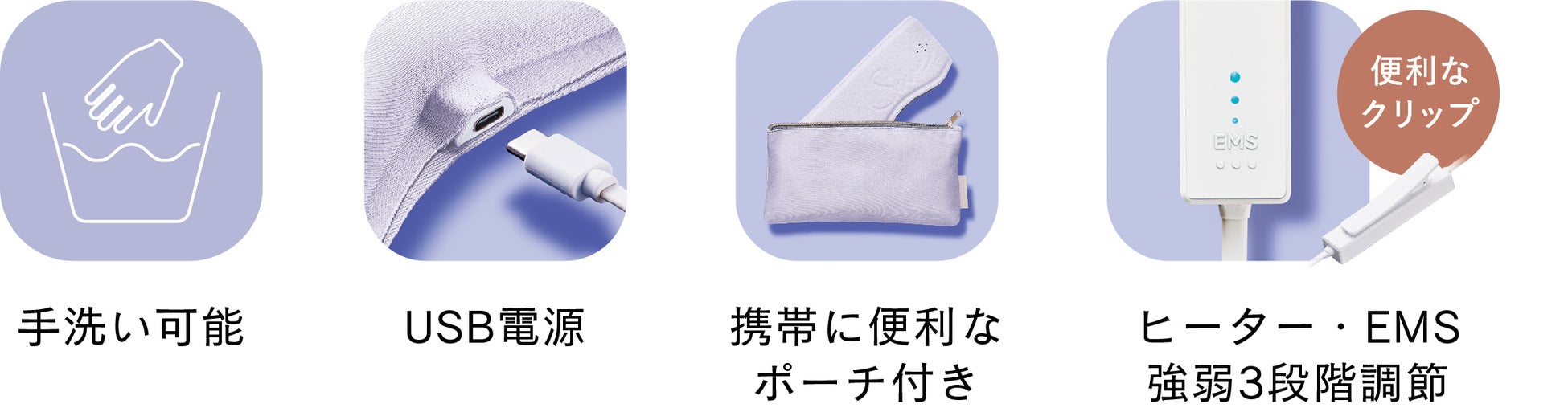 速暖ヒーターを配し、約40度の心地良い温度で目もと・耳を温めます。「めめホット&EMS」は、耳まで温めることで睡眠前に使えば、心地良い睡眠ををサポートします。「めめホット」は、目もとを温めます。