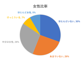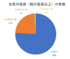 その他、44%の企業が従業員の「半分以上が女性」と回答しているが、女性の役員(執行役員以上)は76%の企業が「いない」と回答するなど、解消に向かうべき課題も見て取ることが出来ます。