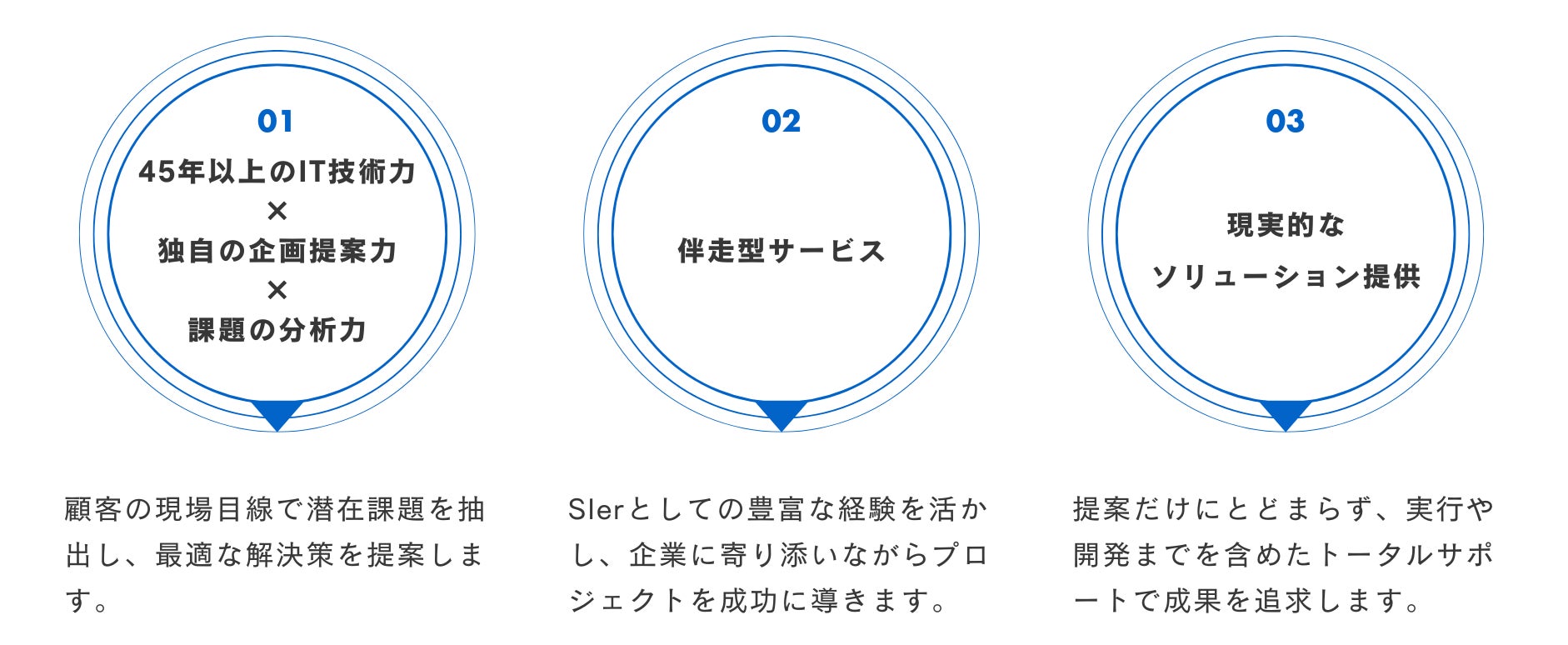 45年以上のIT技術力 × 独自の企画提案力 × 課題の分析力