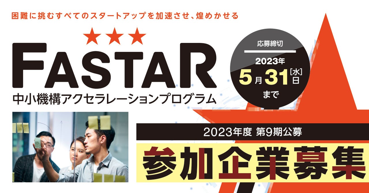 中小機構主催 スタートアップの成長加速化を支援するアクセラレーションプログラム「FASTAR」の2023年度第9期公募を5月1日(月)より開始