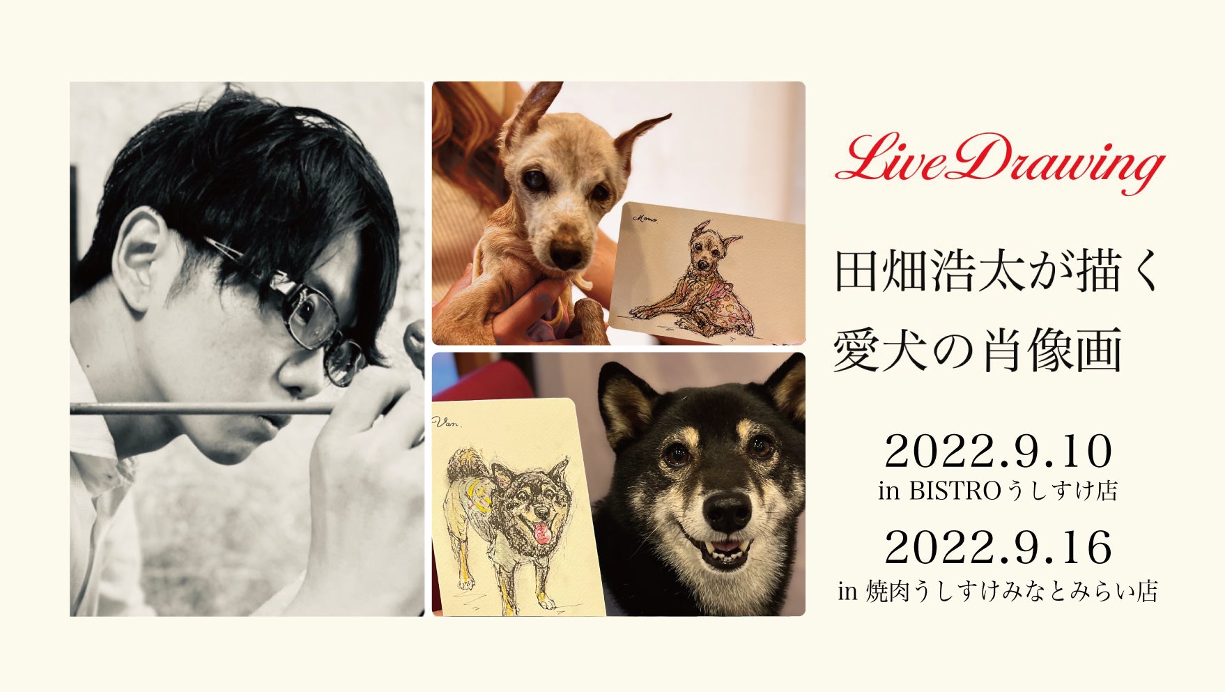 このたび、ペット同飯™️可焼肉店「うしすけ」などを東京・神奈川を中心に展開する株式会社With Pet Family(本社:東京都大田区、代表取締役:𠮷田 達也)は、2022年9月10日(土)に、株式会社スターリーナイト(本社:東京都豊島区、代表取締役:田畑 浩太)が行っているアートポラリスの第3回目となる『ライブドローイング』イベントを、当社直営店舗 BISTROうしすけにて開催いたします。また、同月16日(火)には、第4回目を当社直営店舗 焼肉うしすけ みなとみらい店にて開催いたします。