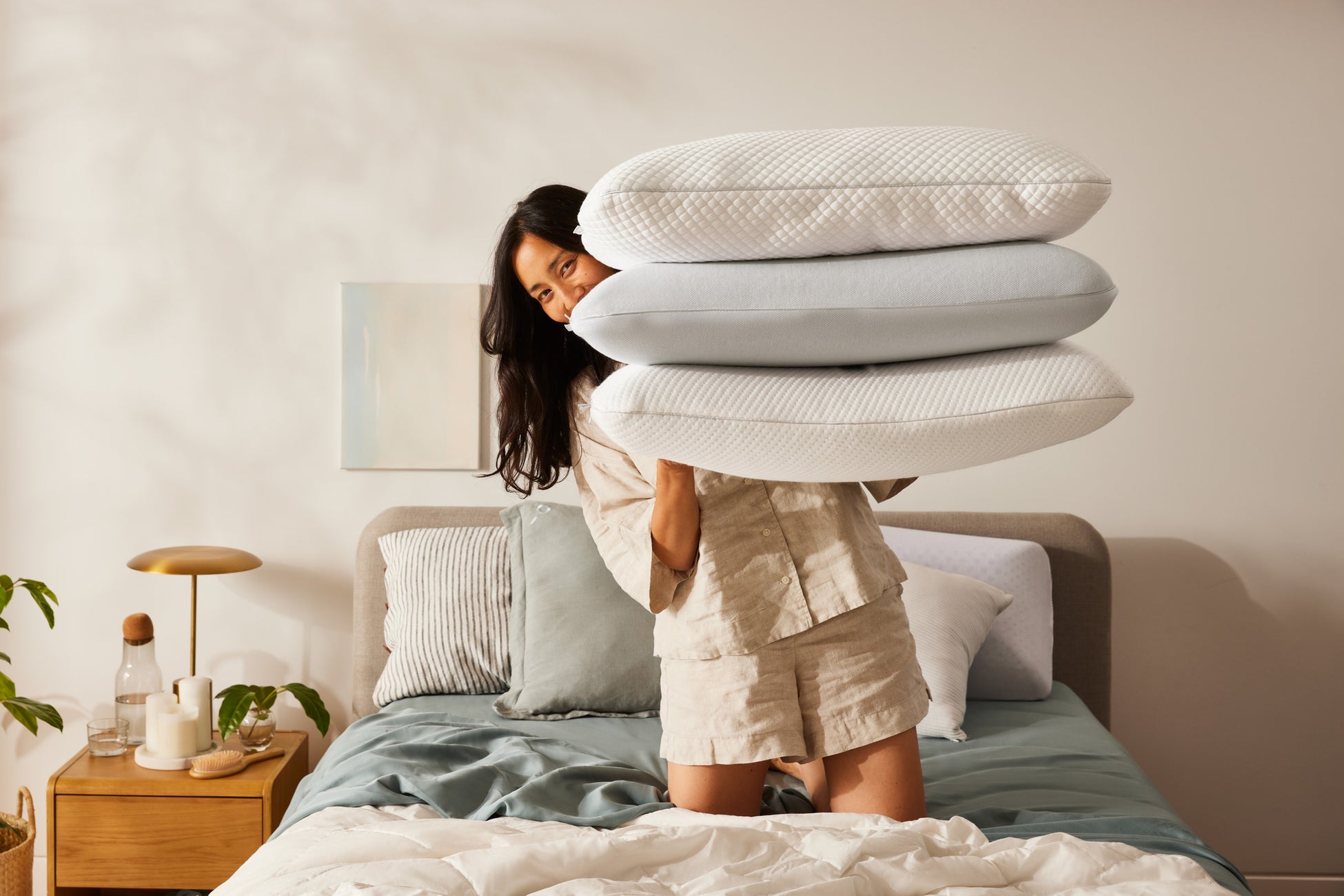 徹底的な日本リサーチで開発された「コアラピロー」、冷感ゲル入りメモリーフォームと羽毛のようなマイクロファイバーを裏表で使い分ける「コアラふんわりピロー」、特殊な温度調節技術で理想的な睡眠環境をつくる「コアラリフレッシュピロー」の3つから、最適な枕をお選びください。「コアラピロー」「コアラふんわりピロー」各1万2,500円(税込み)、「コアラリフレッシュピロー」1万6,000円(税込み)