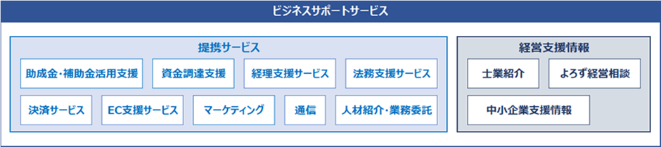 現在、当社の法人口座は、オンラインでの口座開設申込や、利用開始までのスピード、各種手数料の安さ、銀行APIの充実などを理由に、スモール&スタートアップ企業のお客さまのご利用が急増しております。当社をお選びいただいた法人のお客さまのビジネス成長をご支援すべく、外部企業と提携し、「ビジネスサポートサービス」の提供を2021年1月に開始し、多くの提携サービスをご紹介しております。具体的なサービス内容は以下の2点で、すでに提携サービスのご利用やセミナーへの参加など、多くの法人のお客さまに積極的にご活用いただいております。