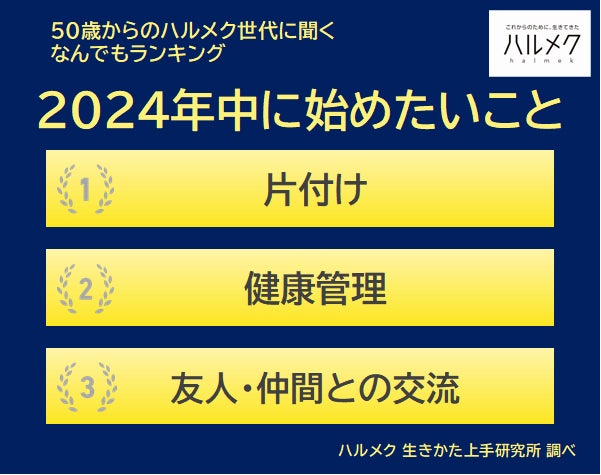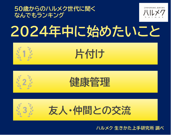 【50歳からのハルメク世代に聞く なんでもランキング】50歳以上の女性が選ぶ『2024年中に始めたいこと』1位は「片付け」