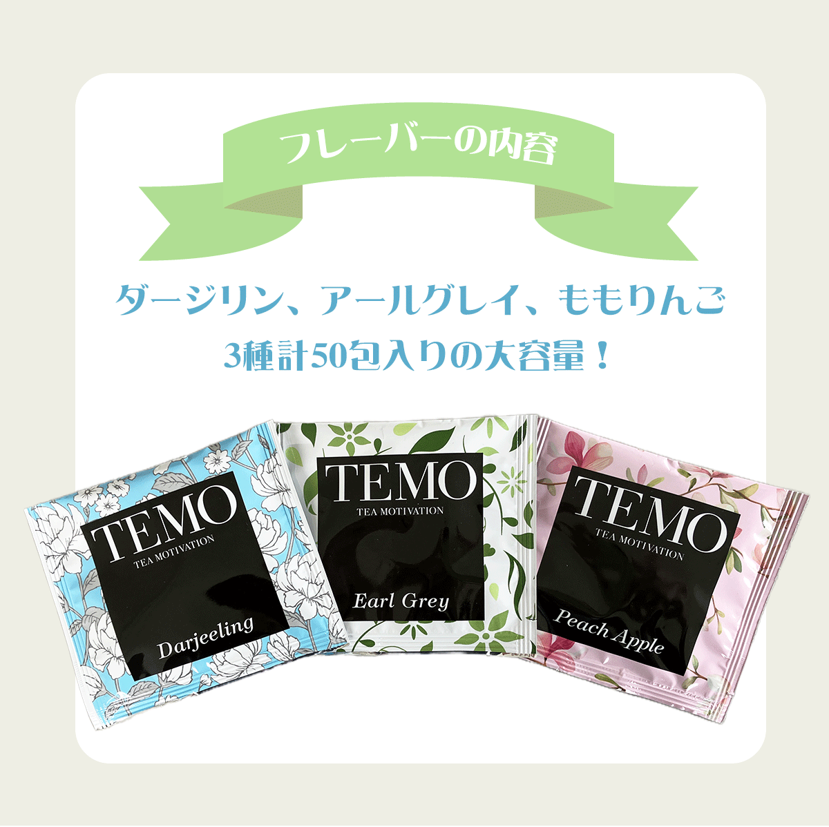 フレーバー:ダージリン、アールグレイ、ももりんごの3種。