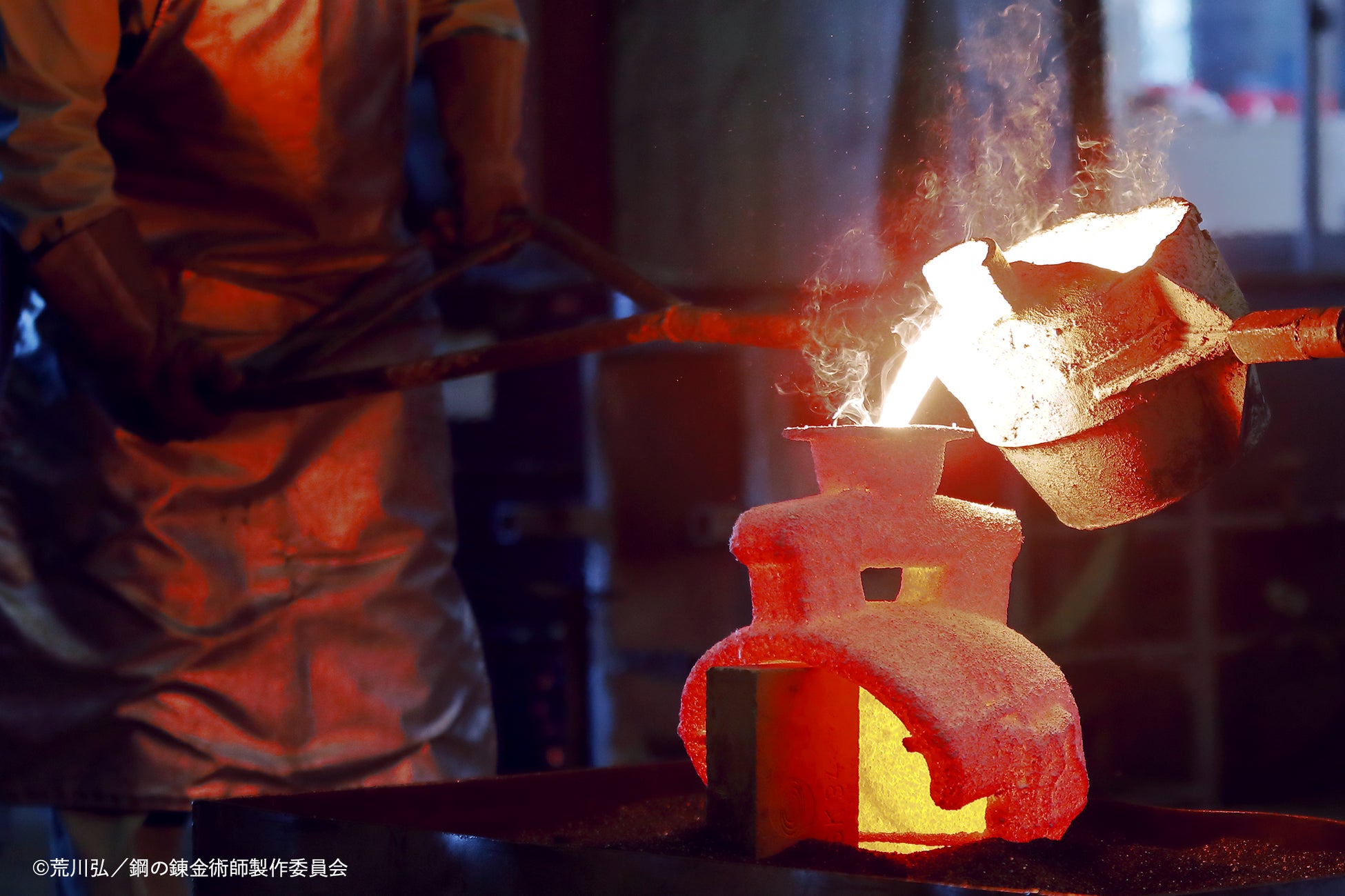 今回のアルの鎧は創業52年のキャステムが、これまで培ってきた金属部品を製造する技術「精密鋳造技術(ロストワックス製法)」にて、鋼の一種であるステンレス鋼を1,700℃の温度で溶かして型に流し込み、製作しております。
