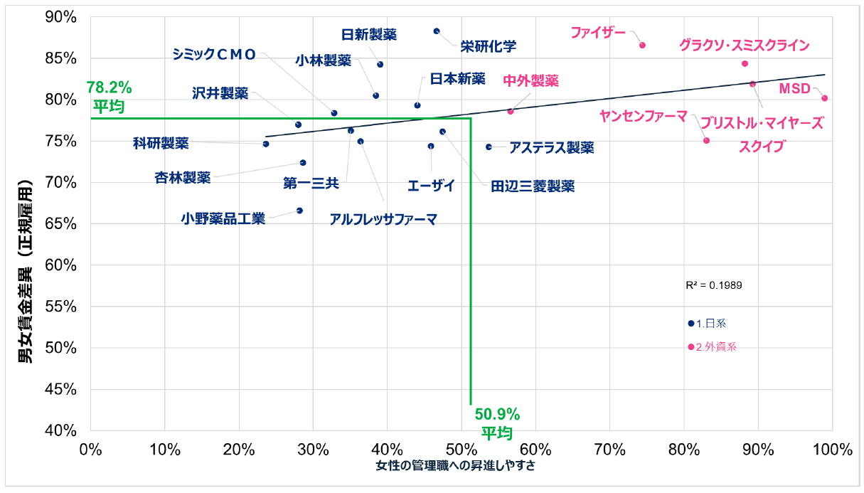図4. 医薬品業種(従業員1,001人以上)における企業別比較