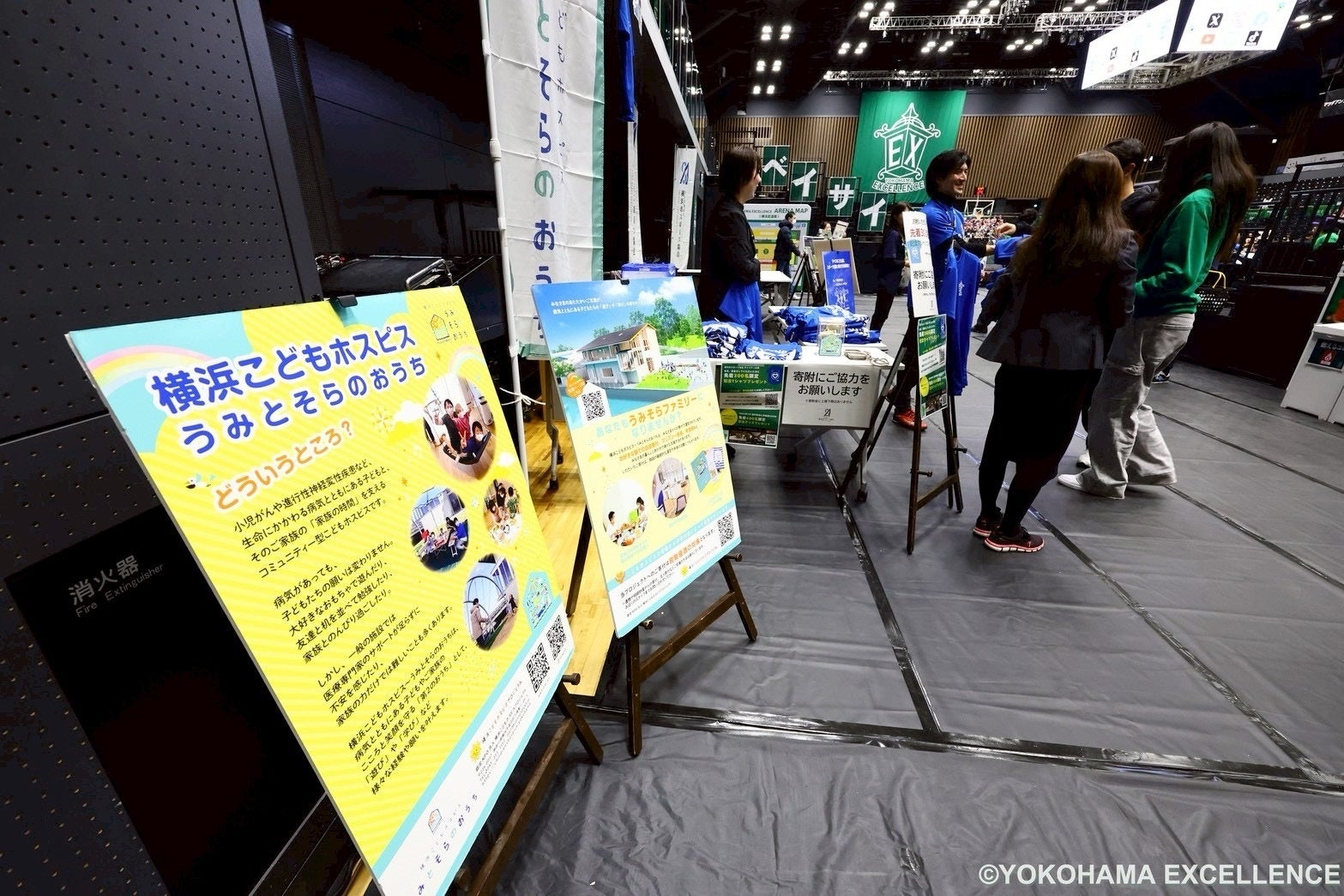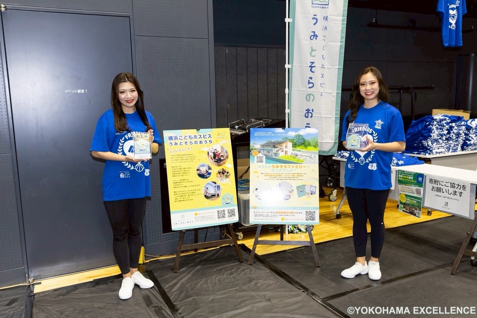 子どもたちとそのご家族にスポーツ観戦を通じて、夢や希望を感じていただく機会をつくり、これまで経験したことのない非日常の興奮や感動、楽しみや社会とのつながりを感じてもらうことを目的に、横浜こどもホスピス「うみとそらのおうち」(横浜市金沢区)の方々を横浜エクセレンスのホームゲームへのご招待および、募金活動を行いました。