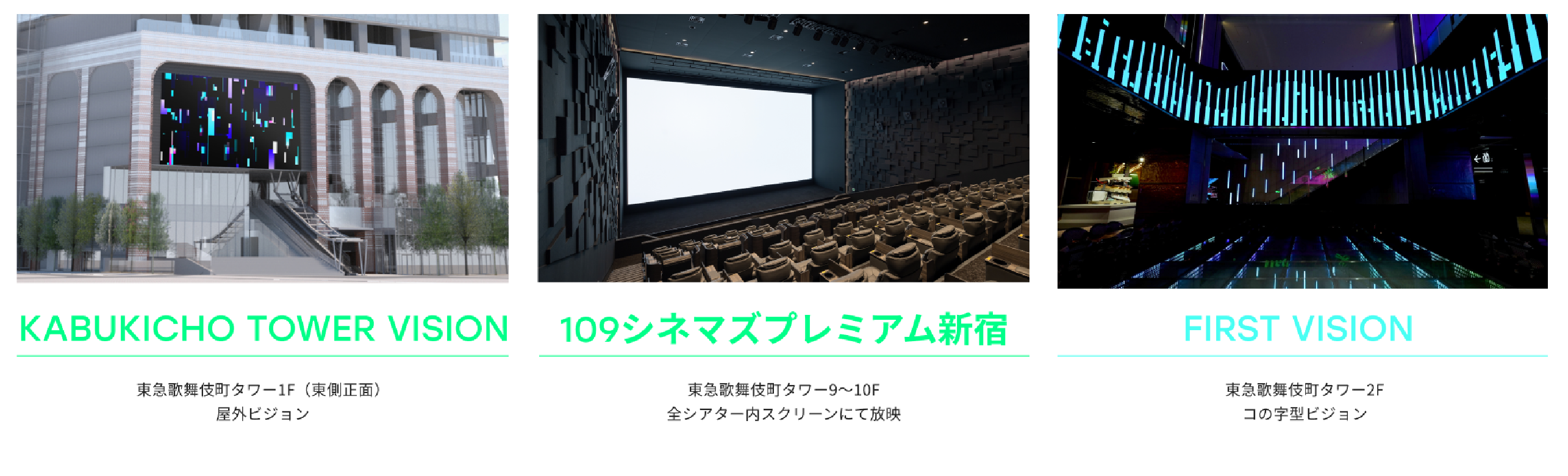 ・「KABUKICHO TOWER VISION」および、「109シネマズプレミアム新宿のスクリーン」にて受賞作品の放映