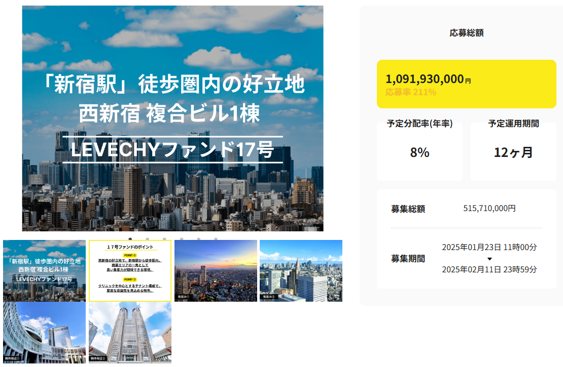 「LEVECHYファンド17号」は、12ヶ月の運用期間を想定しておりましたが、早期の売却が実現し、実際の運用期間は244日となりました。