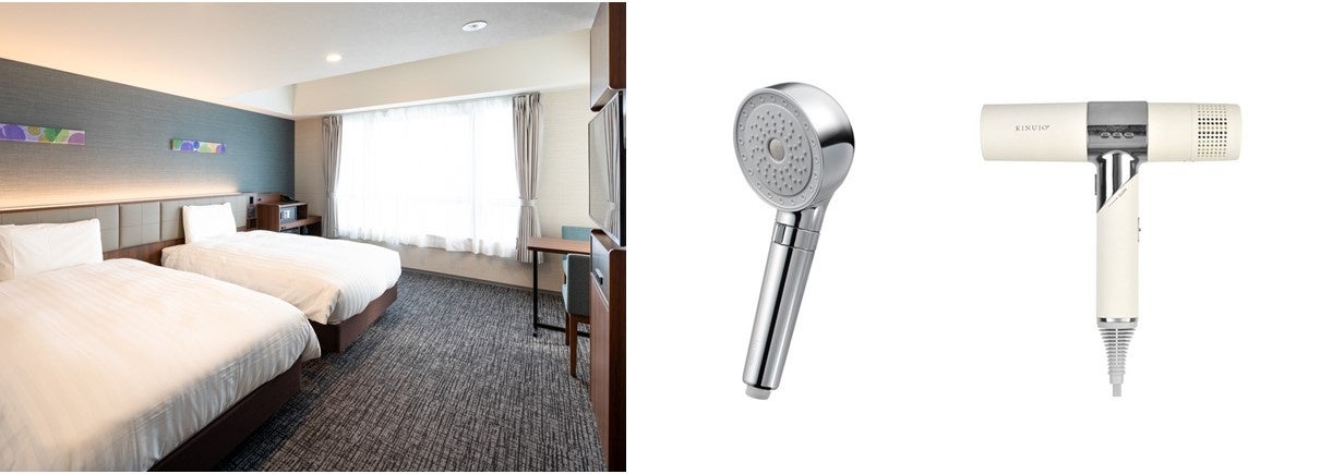 (左)客室 (右)シャワーヘッド / ドライヤー