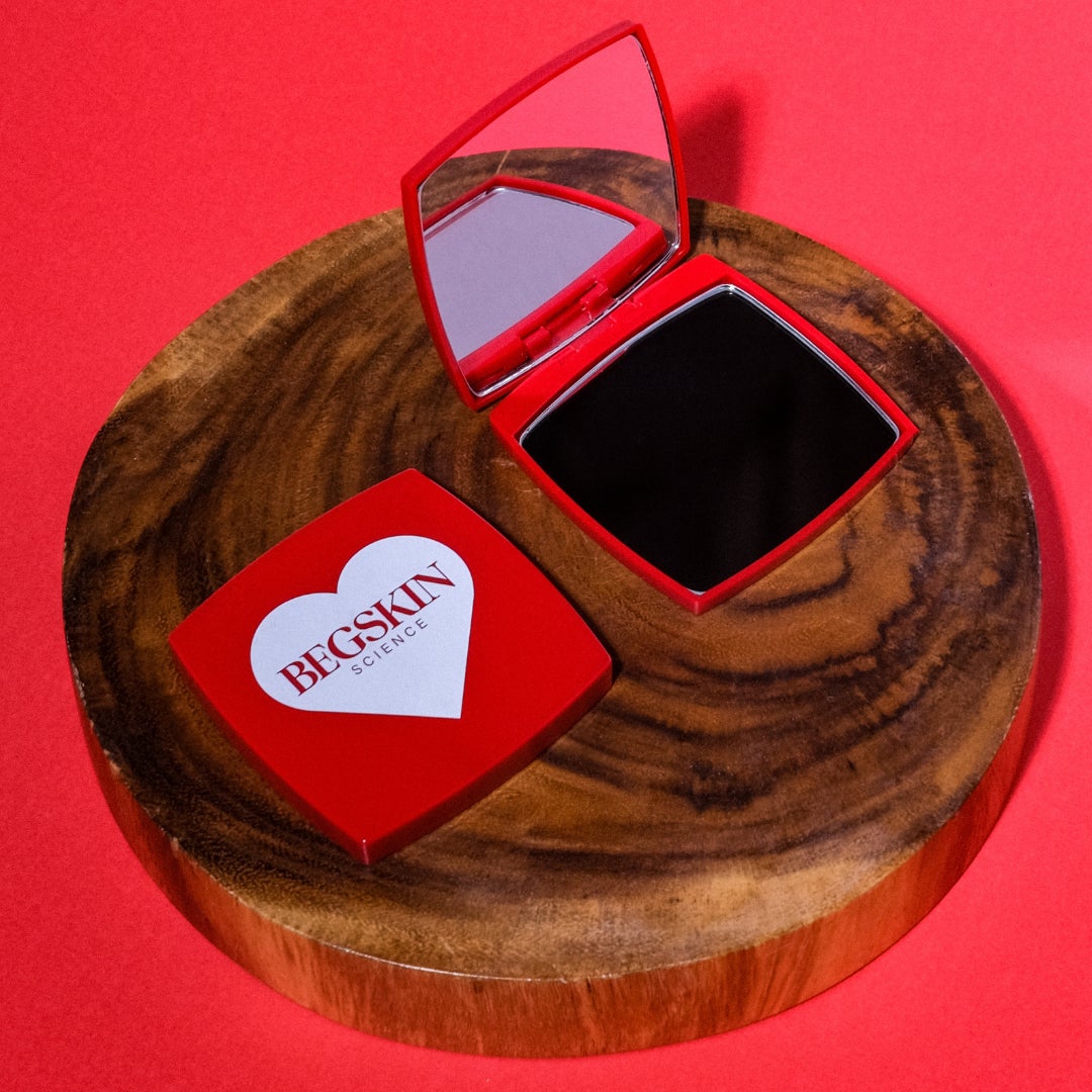 オリジナルボックスは、ワインレッドの背景に絵描かれたシルバーのクリスマスツリーが際立つ、ホリデー気分を高める大人デザインに。同カラーに染まった限定ノベルティは持ち運びに便利なダブルミラーとハート型のステッカーをご用意いたしました。