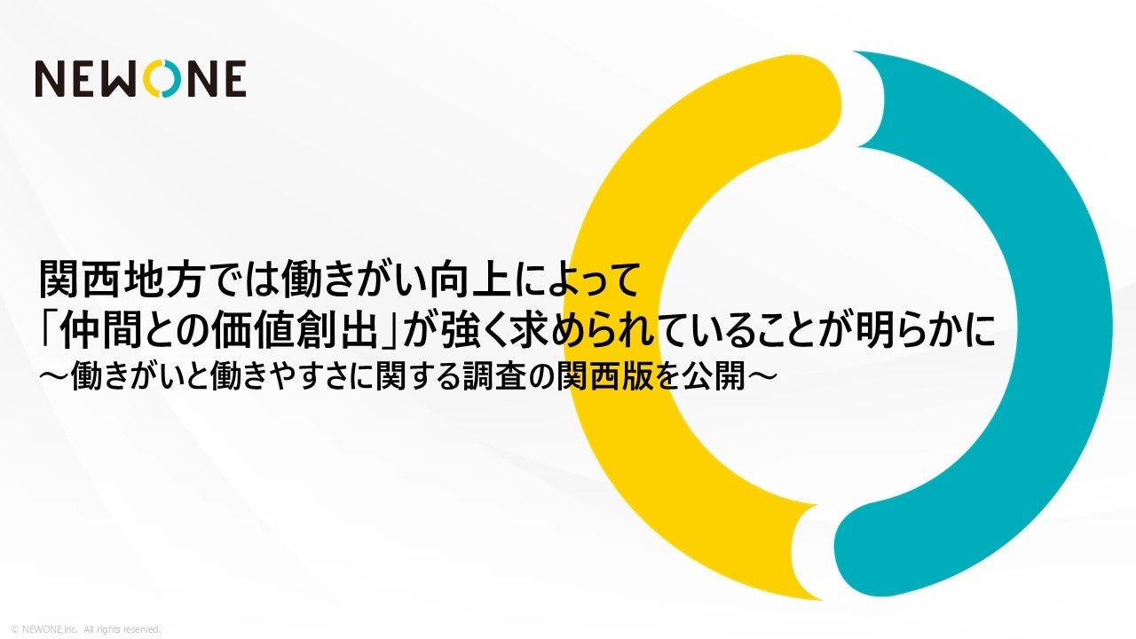 エンゲージメント向上を軸とした組織開発・人材育成コンサルティング支援を通して“推仕ゴト改革”を進める株式会社NEWONE(本社:東京都千代田区 代表取締役:上林周平、https://new-one.co.jp/ 以下、NEWONE)は533名の20代~40代の会社員を対象に、「仕事・職場に関するアンケート」調査を実施いたしました。今回は集計データをもとに、地域ごとで価値観の差があるのかを比較し、特に関西地方と関東地方で差があったデータを公開いたします。