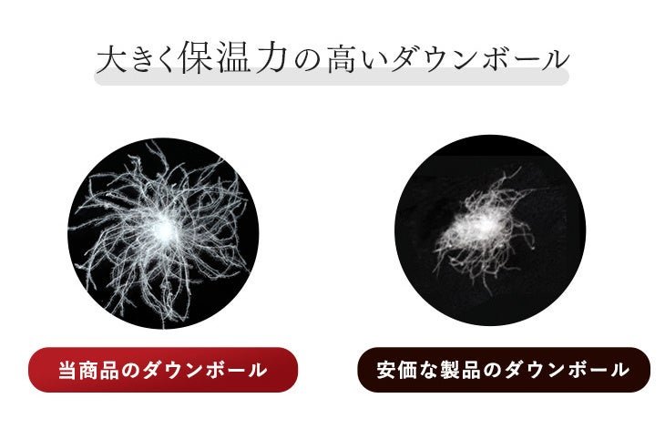 また、羽毛が偏りにくく、縫い目から空気が逃げにくい二層キルトと呼ばれる製法で作られており、暖かく快適にご使用いただくことができます。