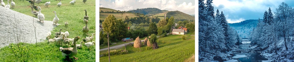 ウクライナには有史前から続く農耕牧畜の伝統と歴史があり、その豊かな大地や穀物などの豊富な飼料によるグースとダックの飼育がおこなわれてきました。元々小さな個別の農家の自家飼育が中心のため、非常に丁寧で愛情のこもった飼育がされており、家族的な小規模飼育は良質なダウンの成長を促します。