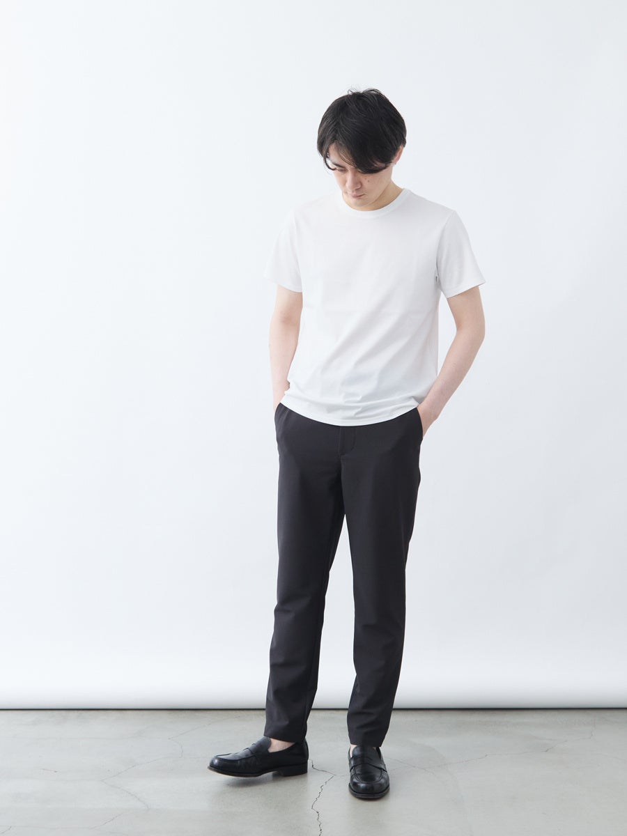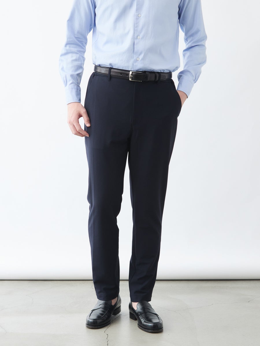 ジョガーパンツほど細くないためビジネスシーンでも違和感ありません。