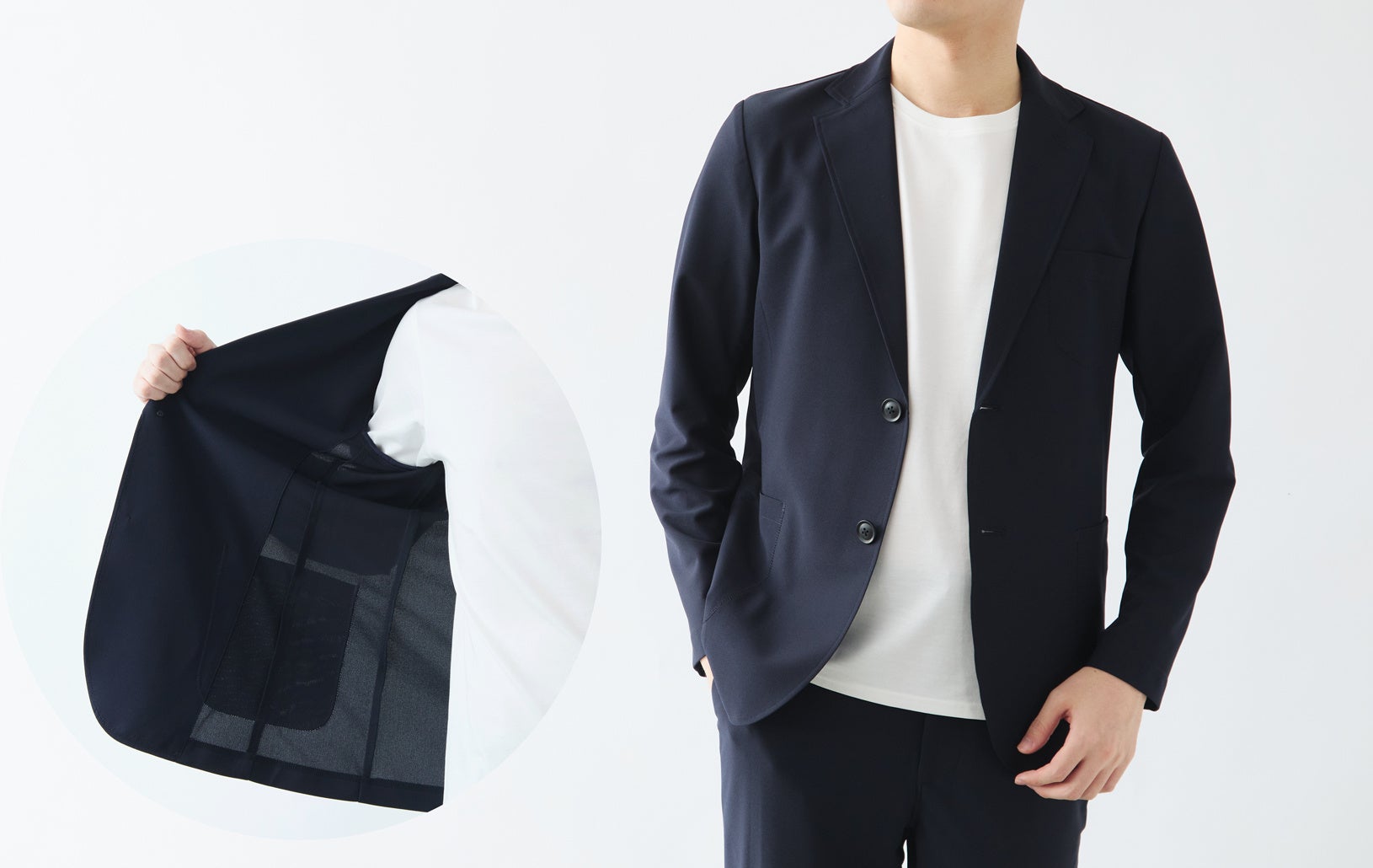 見た目はとてもスマートなジャケットですが、窮屈感を感じさせないストレッチ性も魅力。