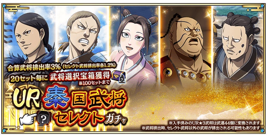 排出対象となる多数のUR秦国武将から、排出確率を高めたい武将を任意に選べます!