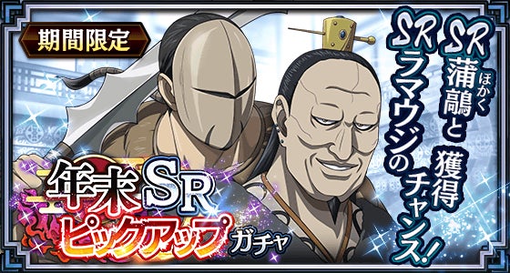 SR★4武将排出確率が通常時と比べて6倍にUPします!
