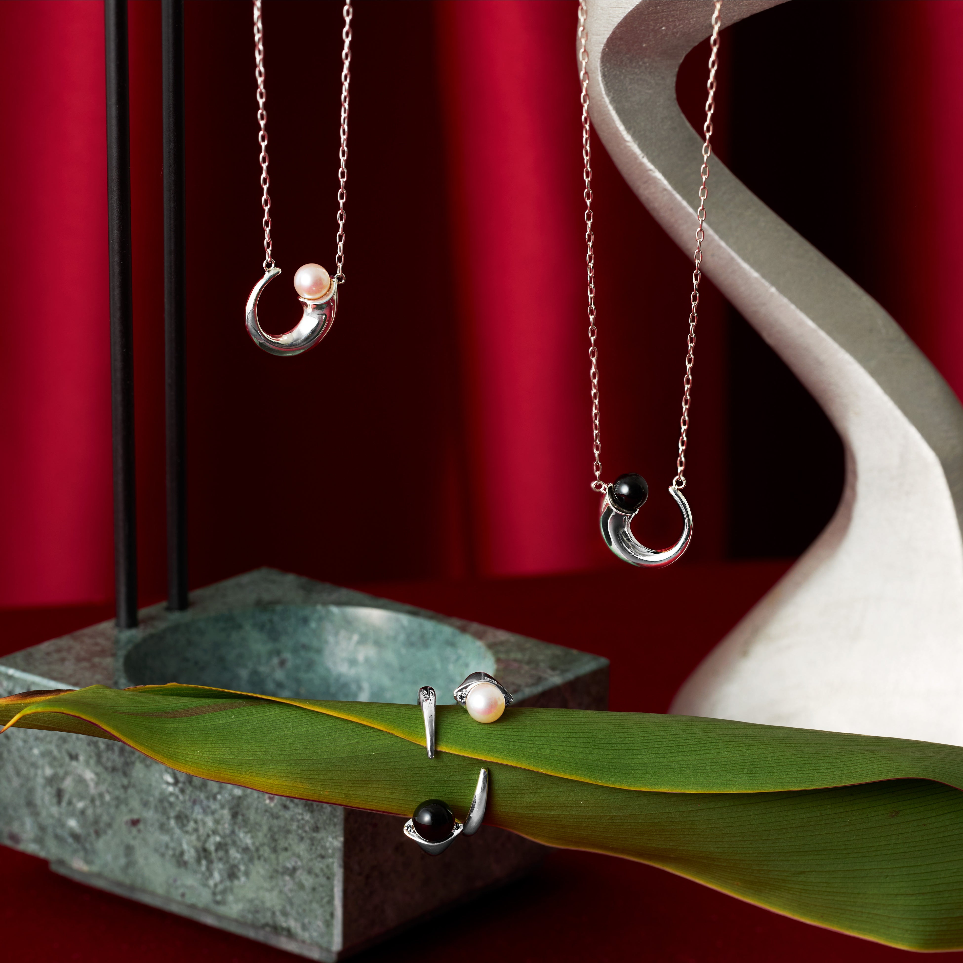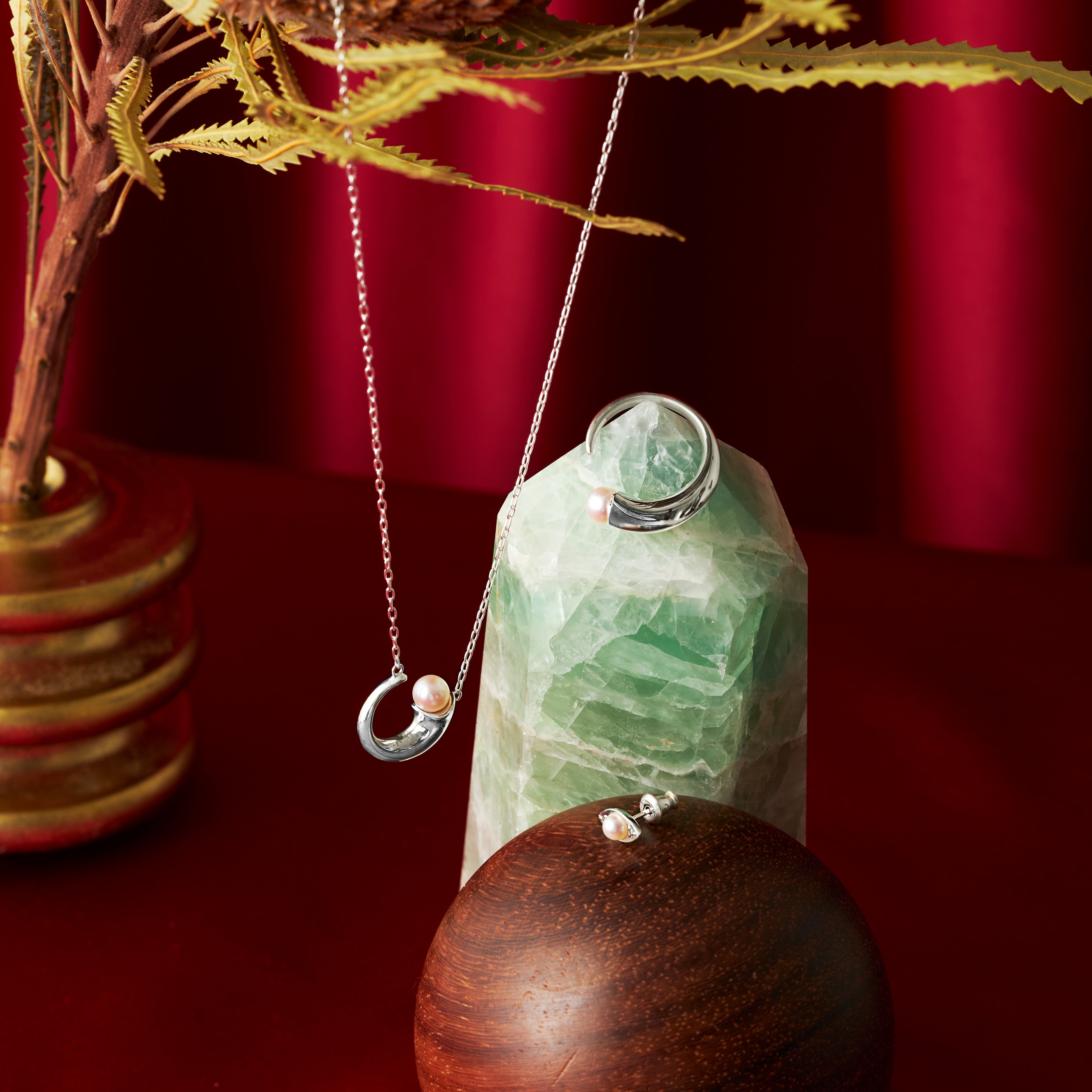 ・Uranus ネックレス(SV925/アコヤパール) ¥16,500・Uranus リング(SV925/アコヤパール/ブラウンダイヤモンド) ¥16,500