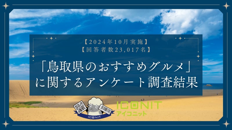 株式会社メディアシークが提供する累計3,600万DL超スマートフォンアプリ「QR/バーコードリーダー・アイコニット」内で、アプリユーザーを対象に毎日実施しているアンケート「アイコニット・リサーチ」において、「鳥取県のおすすめグルメ」に関するアンケートを23,017名に対して2024年10月11日に実施いたしました。