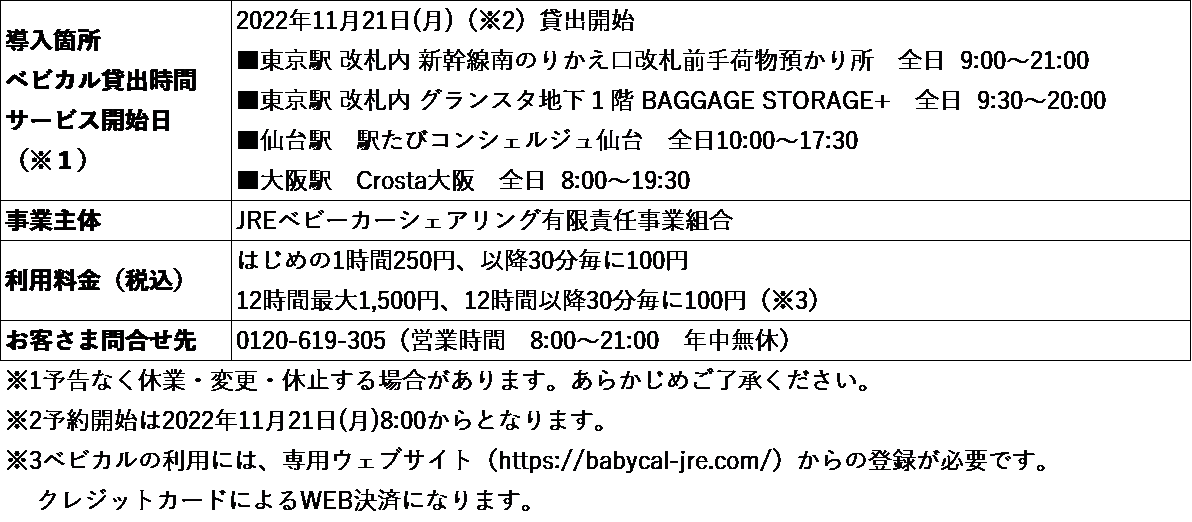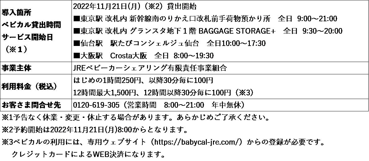 ◆JREベビーカーシェアリング有限責任事業組合(組合員:東日本旅客鉄道株式会社、株式会社ジェイアール東日本企画)は、子育て世代が子供たちと気軽に外出できる社会の実現を目的として、外出先でも便利に利用できる、予約可能なベビーカーレンタルサービス「ベビカル」を展開しています。