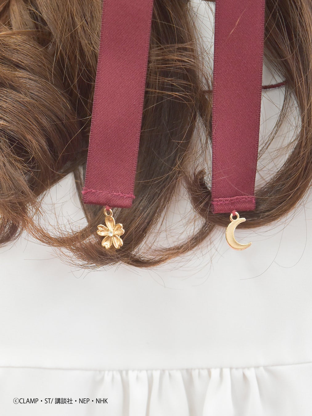 マットサテンのダブルリボンの先には、桜と月のチャームを付けたこだわりのデザイン。