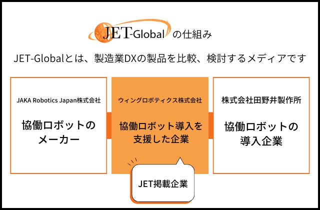 協働ロボット導入の成功事例:田野井製作所とウィングロボティクスの取り組みを紹介【JET-Global】