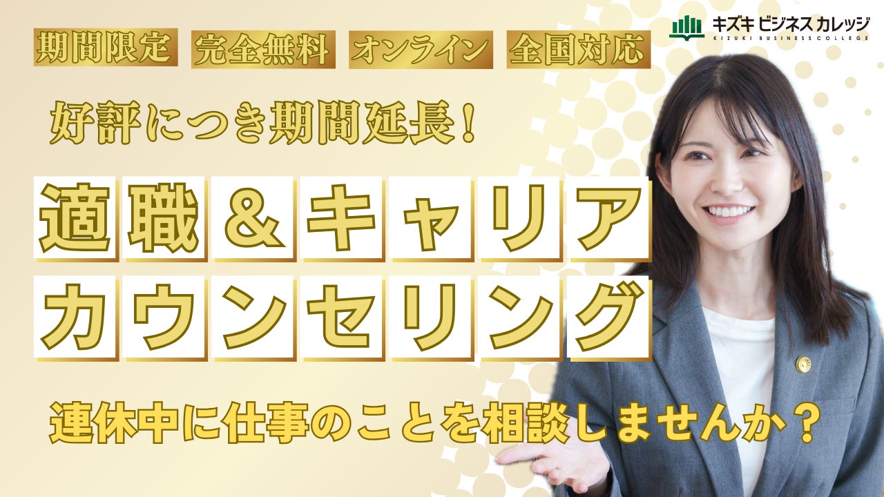 ゴールデンウィーク特別企画が好評につき期間延長!無料のオンライン適職&キャリアカウンセリングを実施中!期間は、2025年5月11日まで!