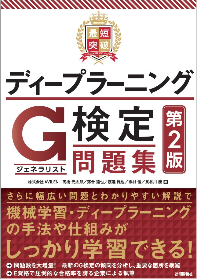 株式会社AVILEN(東京都中央区 代表取締役 高橋 光太郎 以下、AVILEN)は、「最短突破 ディープラーニングG検定 問題集(版元:技術評論社)」の第2版の発売を開始いたします。
