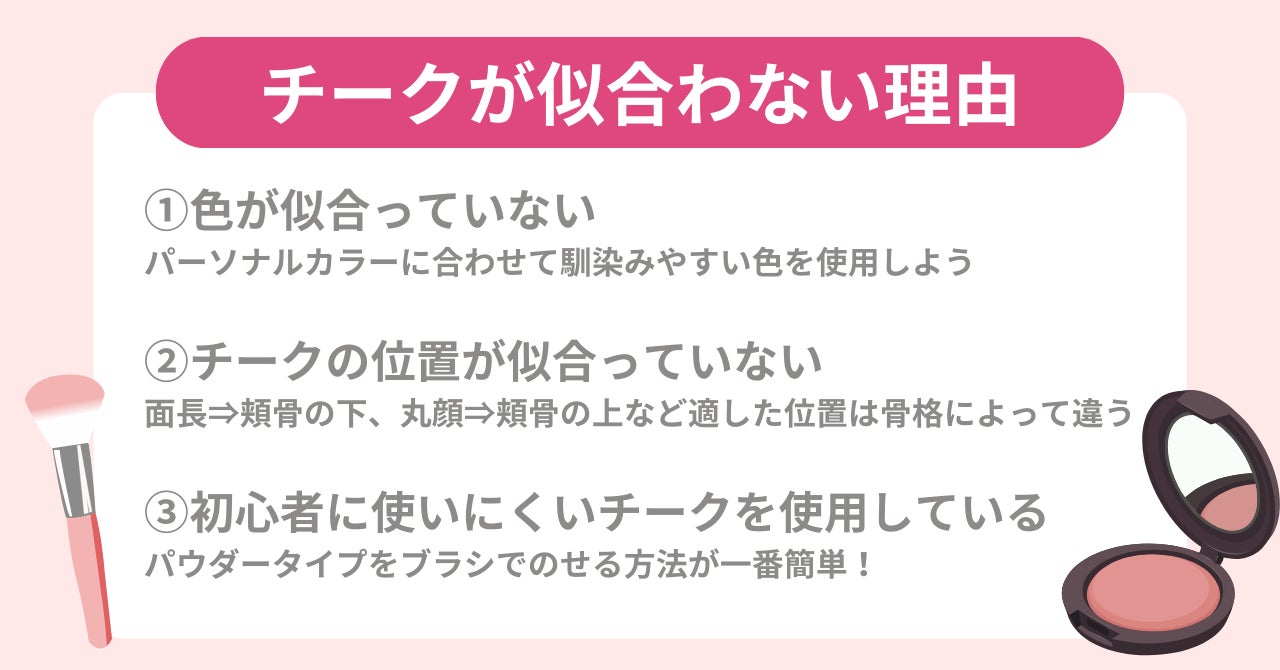 チークが似合っていないのではなく、チークを上手く使用できていない可能性もあります。