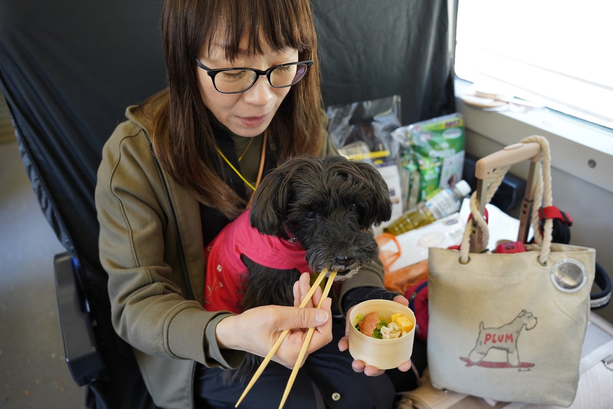 フレッシュドッグフード(※1)2年連続売上No.1(※2)、会員愛犬数30万頭(※3)を突破したワンちゃん用手作りごはんブランド「CoCo Gourmet(以下:ココグルメ)」、猫ちゃん用手作りごはんブランド「Miao Gourmet(以下:ミャオグルメ)」、猫ちゃん用ピューレ「にゃっち」を開発・販売する株式会社バイオフィリア(本社:東京都新宿区、代表:岩橋洸太、以下:当社)がワンちゃん用駅弁提供で協賛した、愛犬も座席に座って旅を楽しめるケージレス列車『わんだフルTRAIN』第3弾が4月12日(土)〜13日(日)に実施されました。往路の車内ではJR東日本で初の取り組みとなるワンちゃん用の駅弁「ココグルメのシュウマイ弁当」を提供しツアーを盛り上げました。
