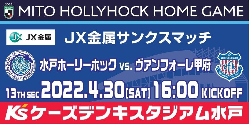 また4月30日(土)ヴァンフォーレ甲府戦を「JX金属サンクスマッチ」として開催し、試合当日にはパートナー契約に関する記者会見を実施することを併せてお知らせいたします。