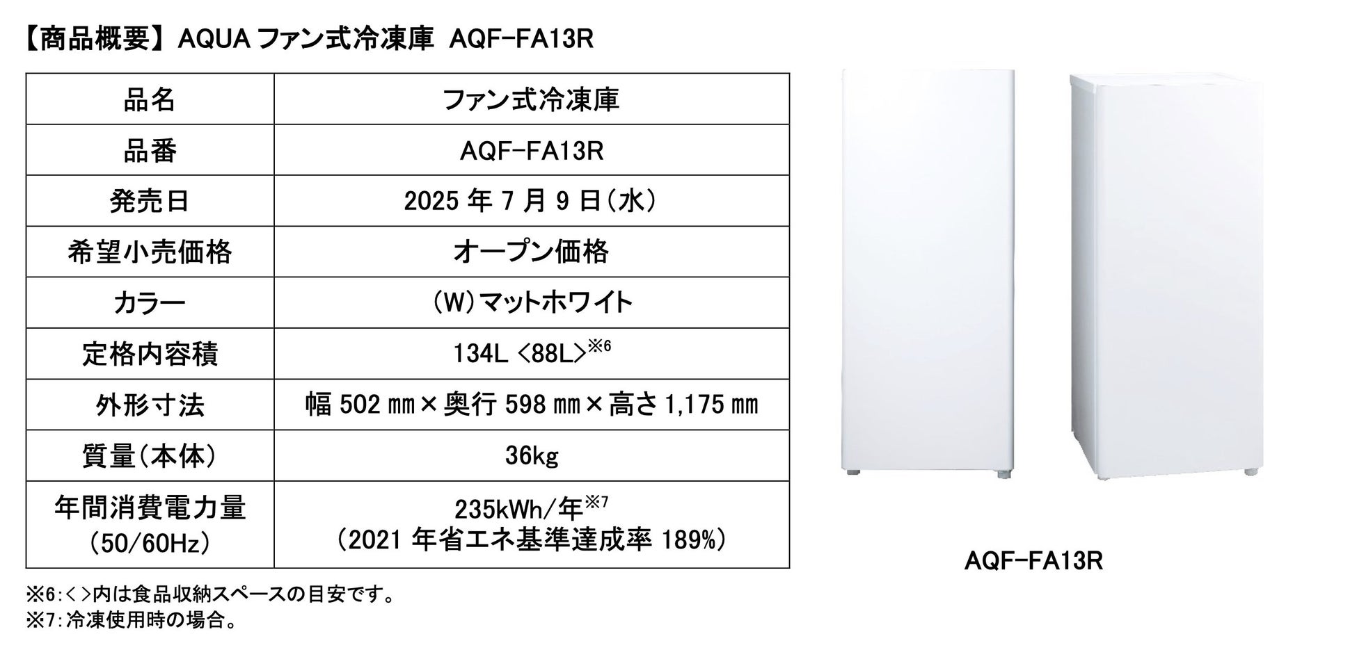 載したコンプレッサーを新たに採用した冷凍・冷蔵の運転切替(※1)ができるファン式冷凍庫「AQF-FA13R」を、2025 年7 月9 日(水)に発売します。