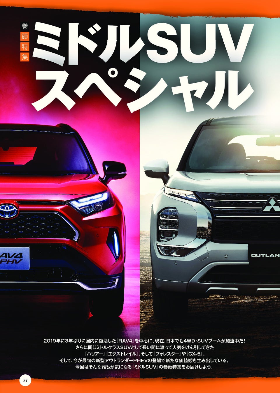 今回はその中心に位置する「RAV4」「アウトランダー」、そして「フォレスター」や「エクストレイル」など、人気の『ミドルSUV』の巻頭特集をお届けします!