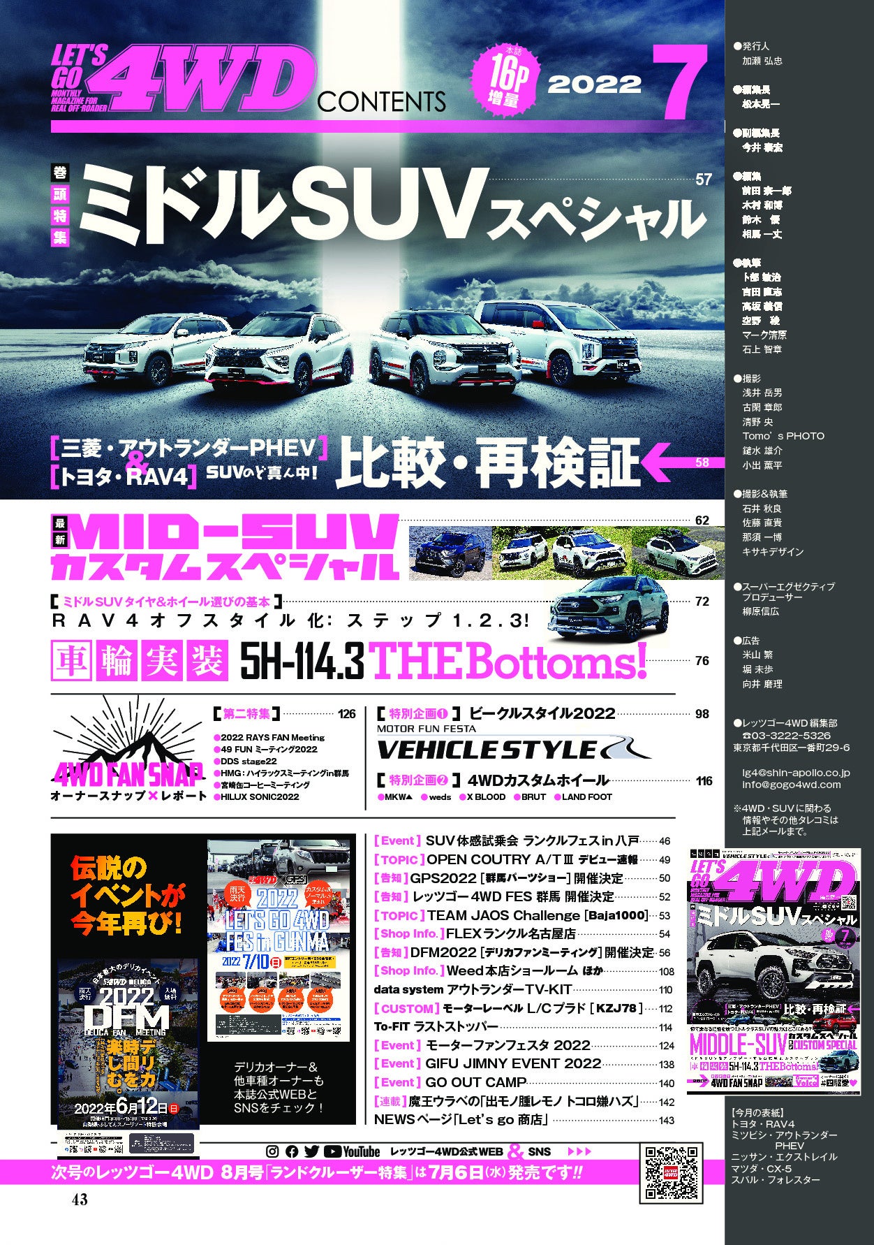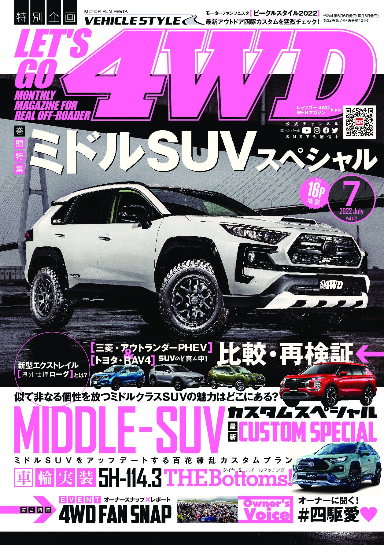 「三菱・アウトランダーPHEV」&「トヨタ・RAV4」SUVのど真ん中を比較・再検証【ミドルSUVスペシャル】! レッツゴー4WD7月号は2022年6月6日(月)発売!
