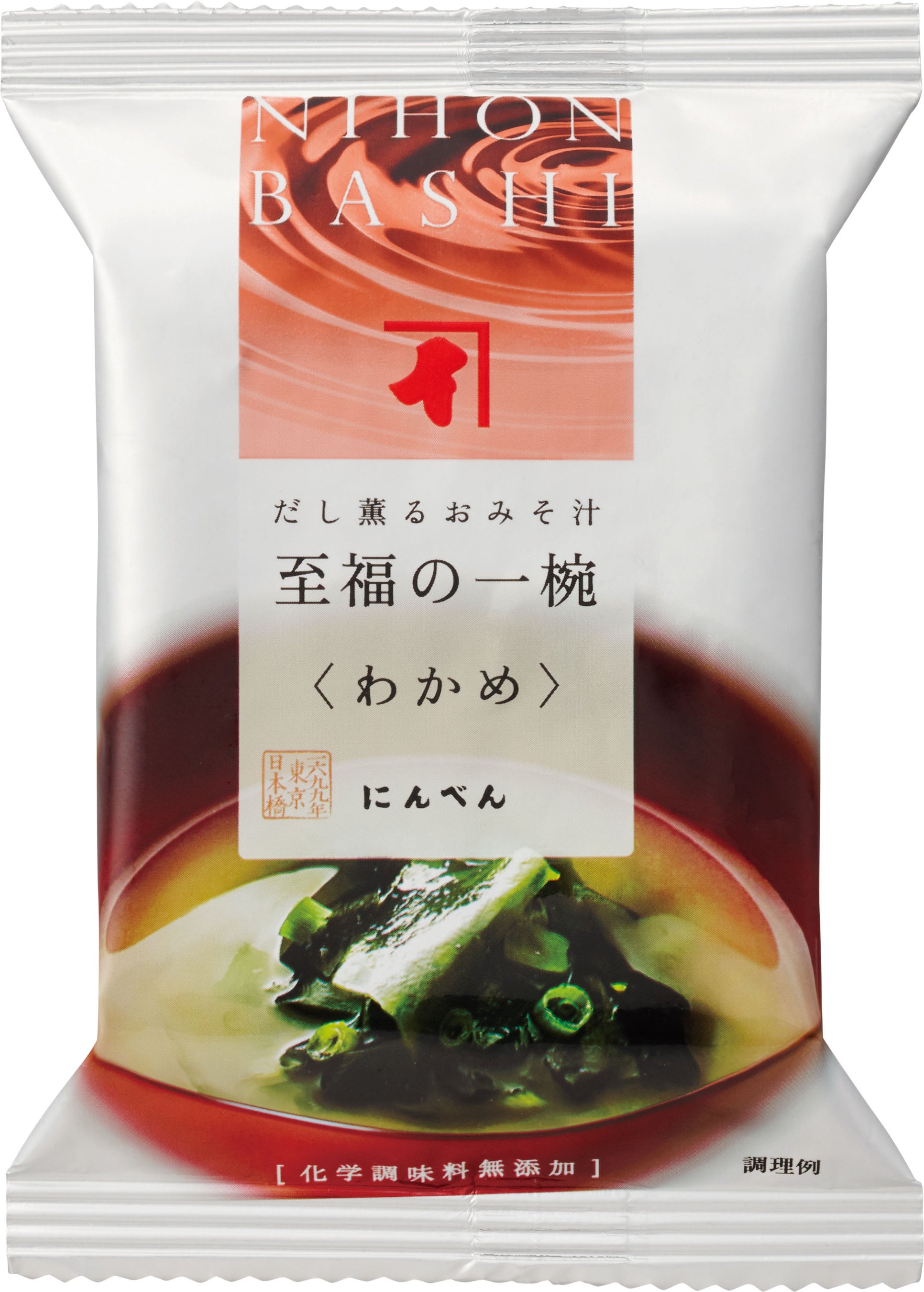 「至福の一椀 お吸い物・おみそ汁」は、だしの風味を活かした、鰹節の豊かな香りが際立つフリーズドライのお吸い物とおみそ汁です。お湯を注ぐだけで完成する手軽さはそのままに、具材ブロックと調味ブロックを分けることで、具材に味が染み込まず素材本来の風味を一層引き立てています。化学調味料、保存料、着色料無添加で安心してお召し上がりいただけます。