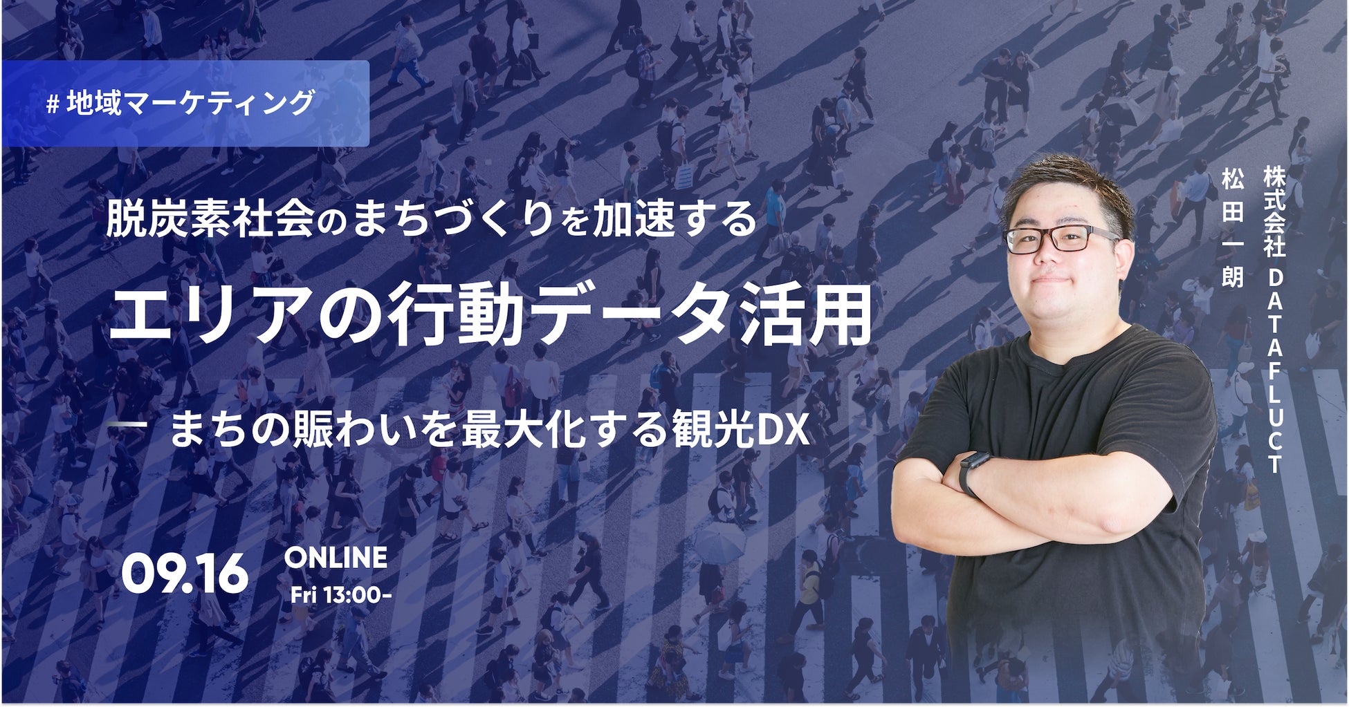 こうした持続可能なまちづくりや観光DXの実現に向けて、人流やトレンドなどを把握できる「行動データ」の活用が注目されています。本セミナーでは、DATAFLUCT インパクトテック事業本部 BizDevとして多数のスマートシティ関連領域事業を推進する松田 一朗が、まちづくりにおける行動データ活用の先進的な事例や、実践のためのポイントをご紹介します。