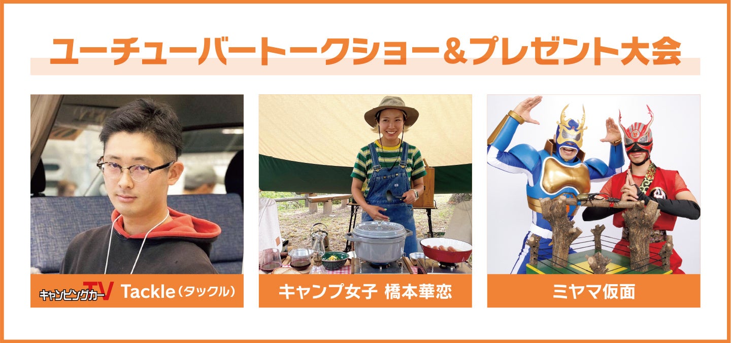 国内最大級、女性向けキャンプ情報発信&コミュニティ【@camjyo /キャンジョ】を運営するキャンプ女子株式会社の代表・橋本が、キャンピングカーTV Tackle(タックル)氏とトークショーに出演します。