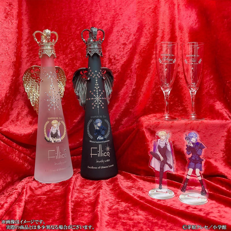 2人が所属するホストクラブ・EMPEROR 1stのロゴとリキヤ、レイの名前が入ったオリジナルシャンパングラス。