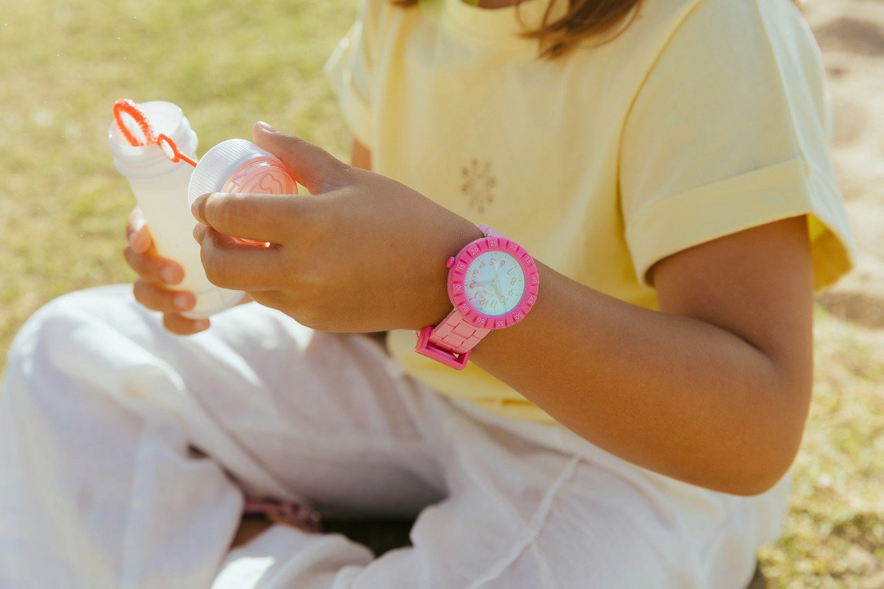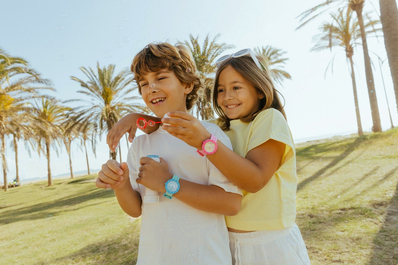 時間の読み方を学びながら、一生残る夏の思い出を作れるよう、大切なお子さんにSummer Splashコレクションの時計を贈りましょう。