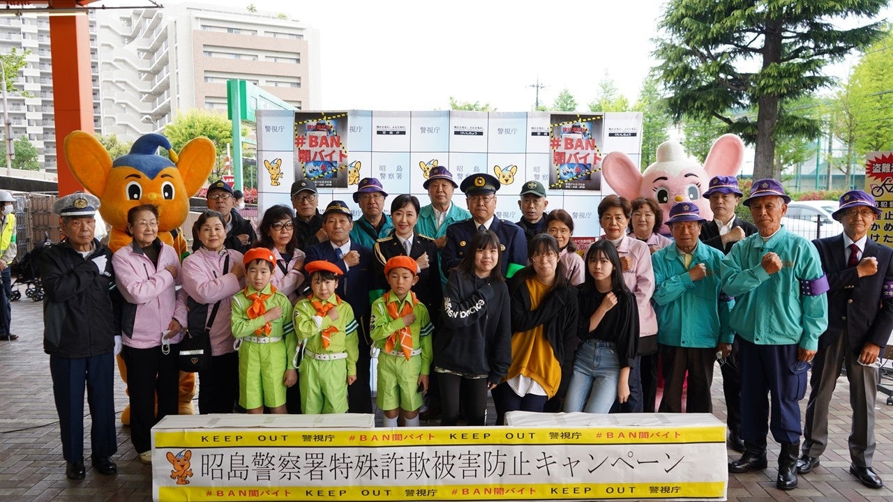 また、実際に昭島市内でも被害が発生している特殊詐欺の対策について、伍代支援官は、「特殊詐欺の被害に遭わないためには、防犯対策を皆様自身で意識し、実施することが大切です。知らない人からお金に関する電話がかかってきても一人では判断せず、ご家族、親戚、地域の方、または警察に相談してください。一人で立ち向かうのではなく、地域一丸となって特殊詐欺被害に遭わないように皆さんで協力していきましょう。」と、特殊詐欺被害撲滅を昭島市民に強く訴えました。