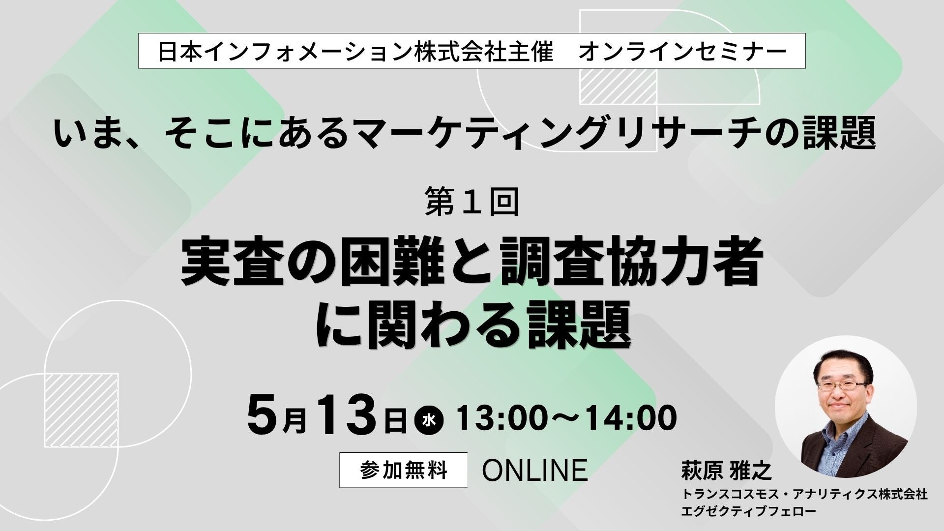 総合マーケティングリサーチ会社の日本インフォメーション株式会社(本社:東京都中央区、代表取締役社長:斎藤啓太)は、2026年5月13日(水)13:00よりトランスコスモス・アナリティクス株式会社エグゼクティブフェローの萩原雅之氏を講師にお迎えして、無料オンラインセミナーを開催します。