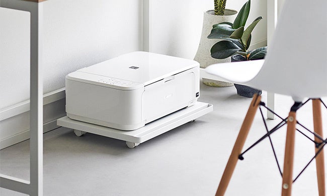 使う時だけ引き出せる便利なキャスター付きのプリンターラック。